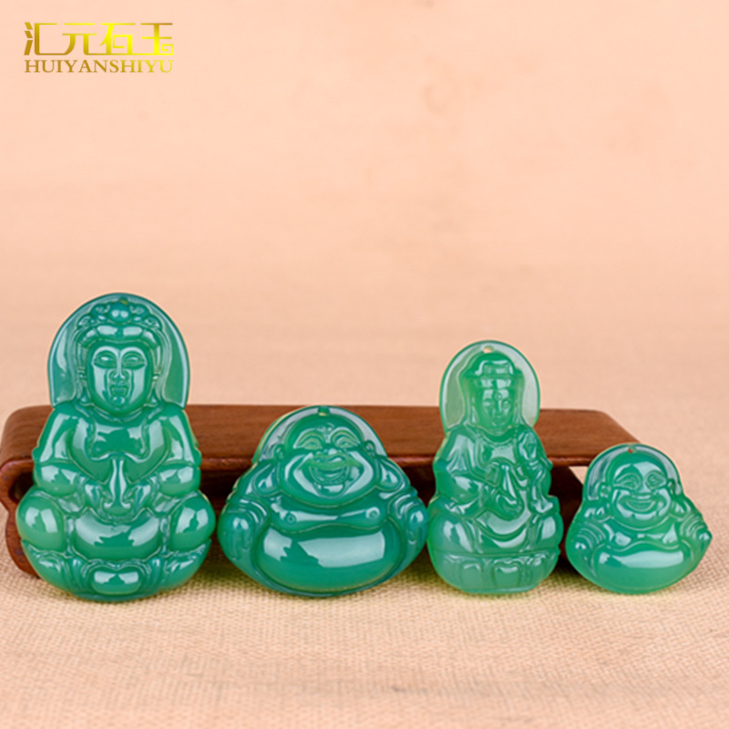 緑瑪瑙の大きいサイズの観音仏の掛け物の男女の金の玉髄の弥勒仏の公のペンダントの玉の玉器の商品の供給源は生放送します。