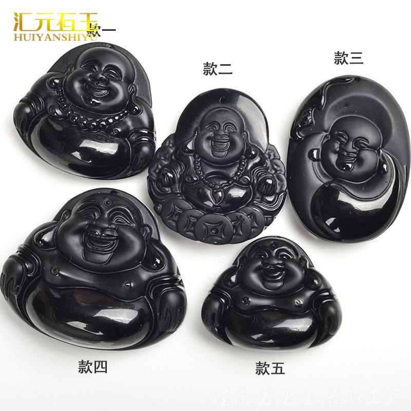 メーカー卸売り黒曜石玉仏ペンダント大腹弥勒仏公ペンダント玉玉器ペンダント卸売り直播金