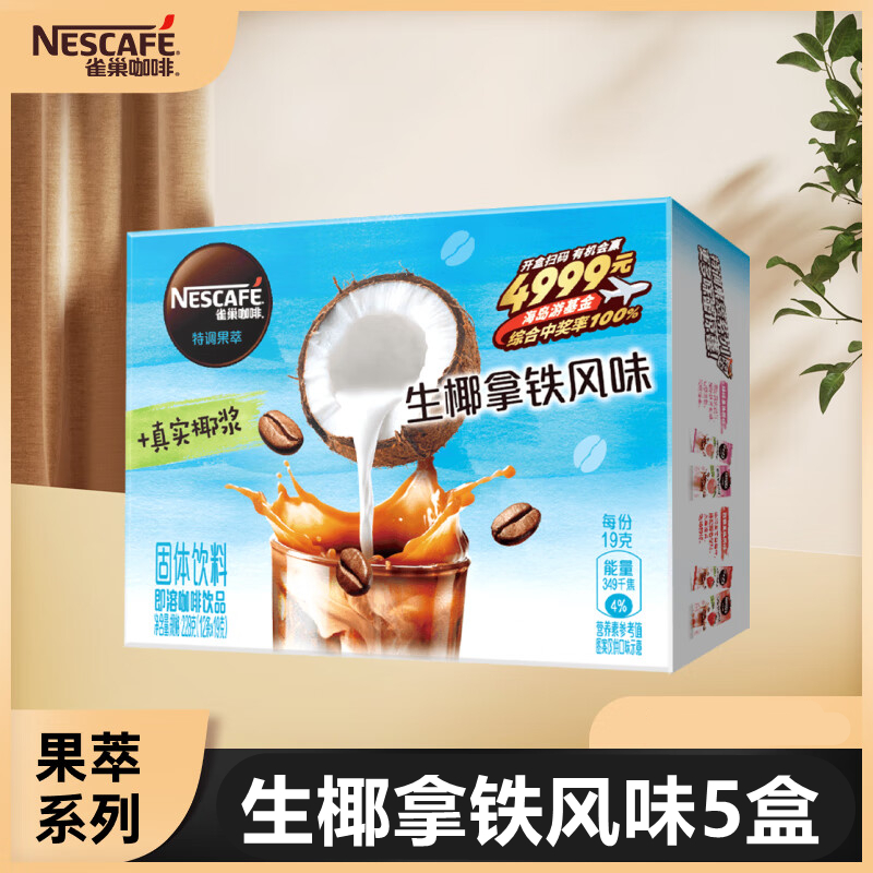 ネスレコーヒー生ココナツラテ風味5箱 (60本を含む) 特調果抽出速溶粉冷熱双泡