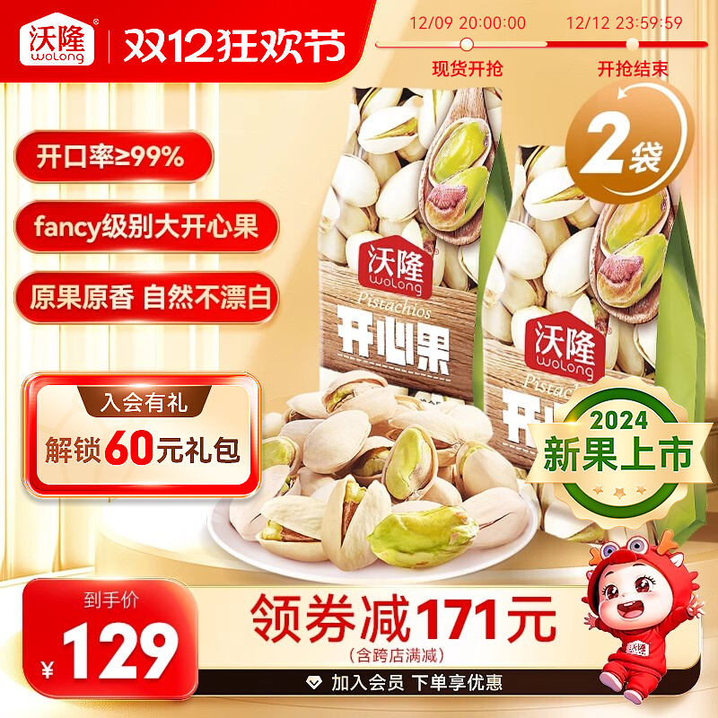 ウォロン開心果500g 2袋原味原香2斤無漂白剤間食2024新商品新果