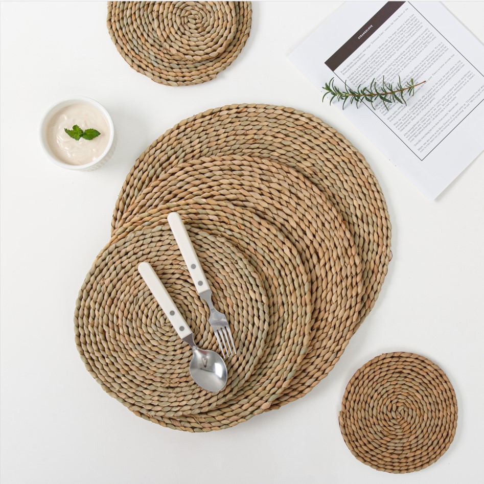 编み水ヒョウタン草ダイニングマット草编みマット草编み断热マット北欧ダイニングマット编みコースター