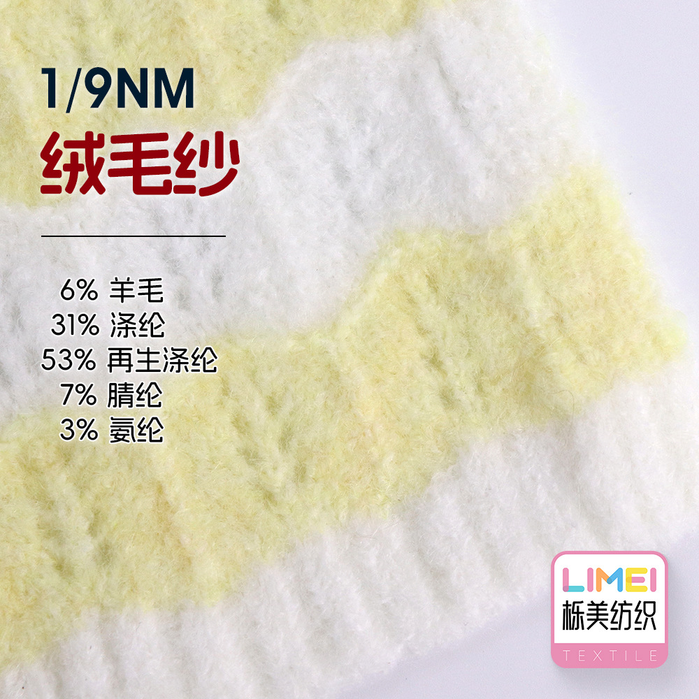 樫美紡織1/9nmパイル毛糸6% ウール31% ポリエステル53% 再生ポリエステル7% アクリル3% ウレタン