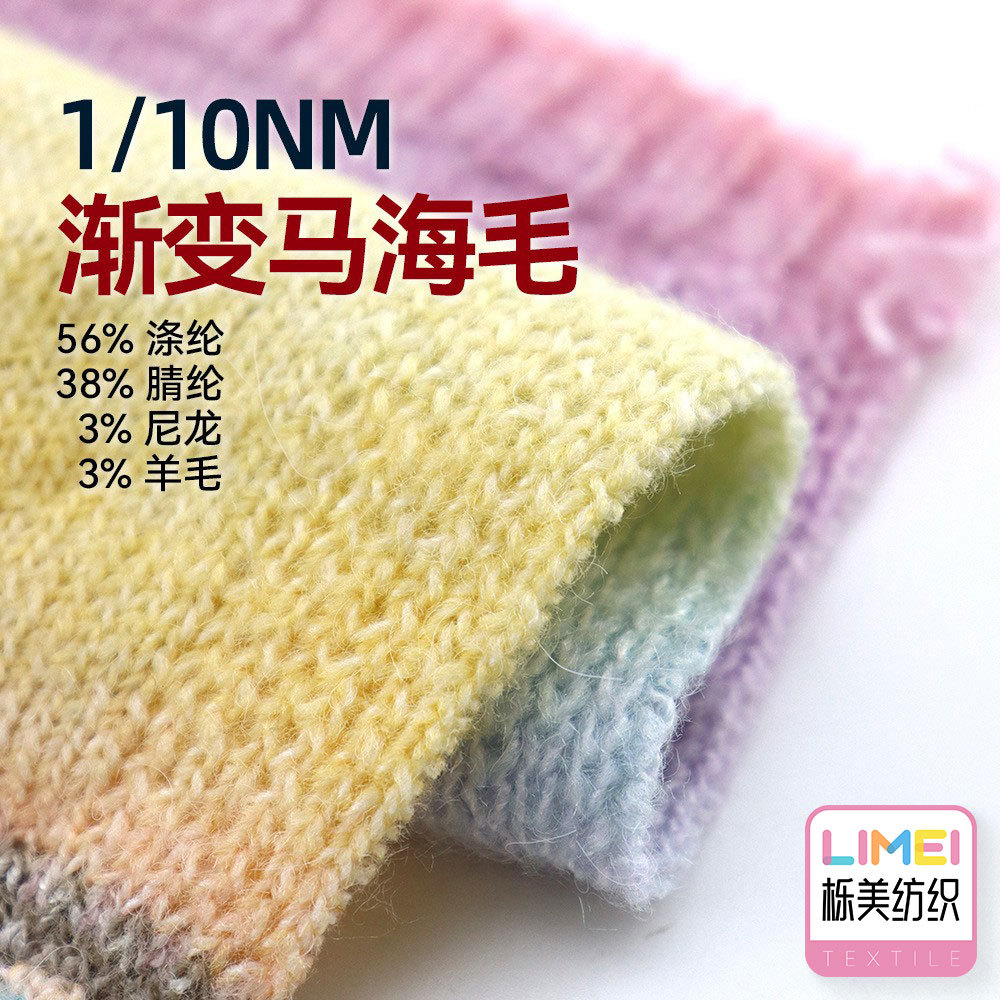 樫美10本グラデーション馬海毛帽子セーターセーター糸56% ポリエステル38% アクリル3% ナイロン3% ウール