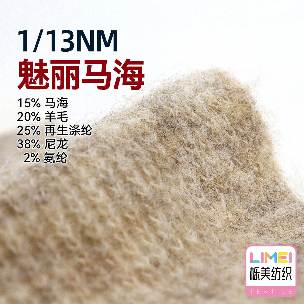 樫美13本の魅力的な馬海毛ラクダ毛15馬海20ウール25% 再生ポリエステル38% ナイロン2% スパンデックス