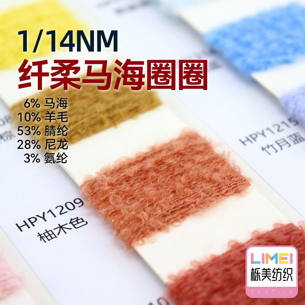 樫美14本の繊維柔らかい馬海毛輪糸6% 馬海10% ウール53% アクリル28% ナイロン3% スパンデックス
