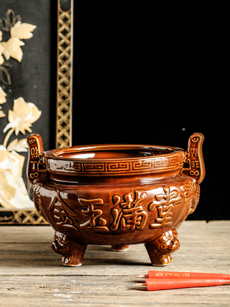 家庭用陶磁器三足香炉室内香薫碗屋外小香炉香挿古銅色双耳三脚大香炉
