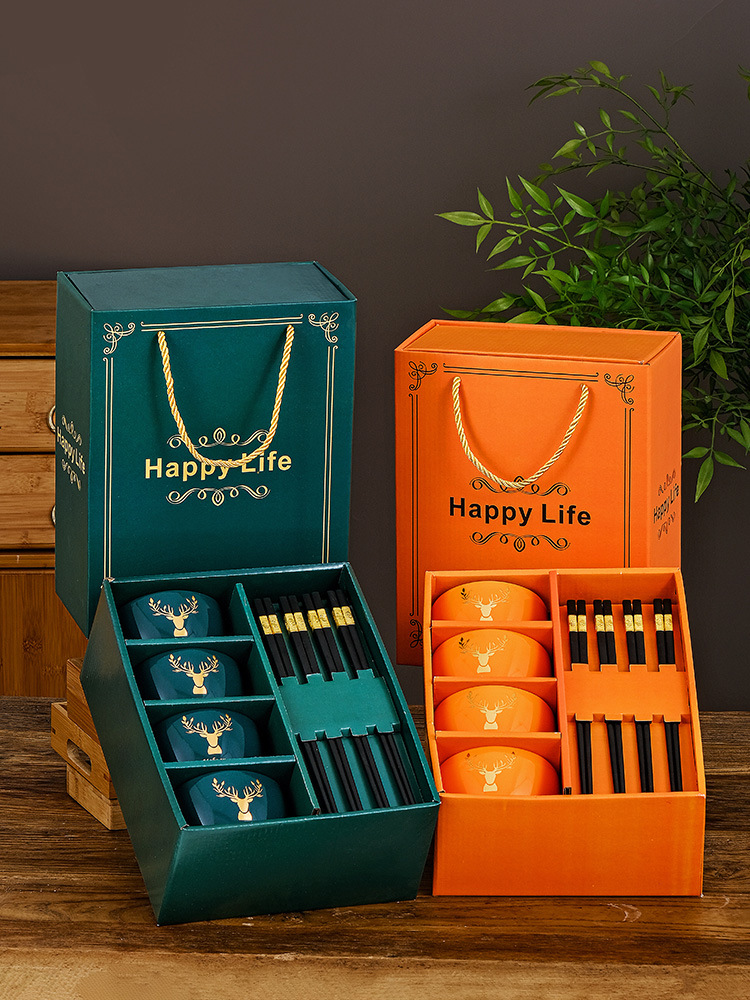 2025新型実用小贈り物碗箸セット陶磁器碗セット家庭用碗食器新年碗皿お土産バッチ