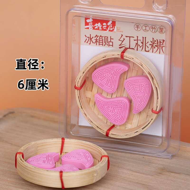 喜狸文創創意潮汕特色3d竹籠紅桃高顔値冷蔵庫貼り強磁気記念品