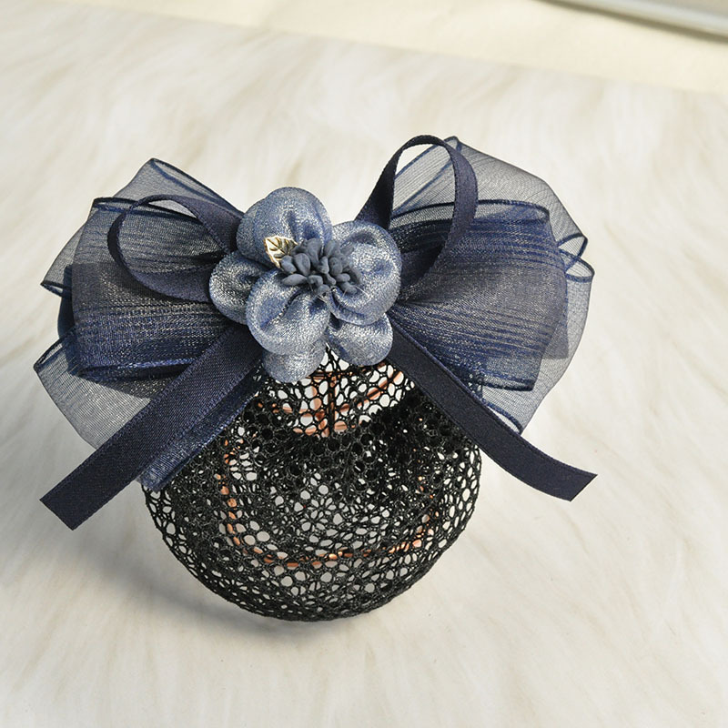 流行の頭の花2022年の新型の青い蝶結びの頭飾りの女性の空乗の看護婦の髪の精致な髪のネットの卸売り