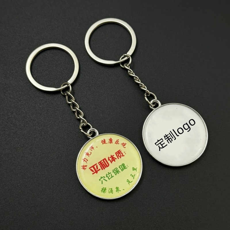 【嘉伊】円形チェーン金属キーホルダー亜鉛合金両面彫刻ストラップレーザーロゴプレゼント