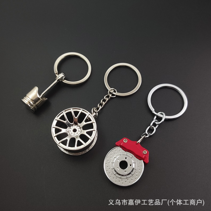 [Jia Yi] 外国貿易クロスボーダーキャリパー亜鉛合金ホイールシルバーブラックオプション車のキーホルダーピストンキーホルダー