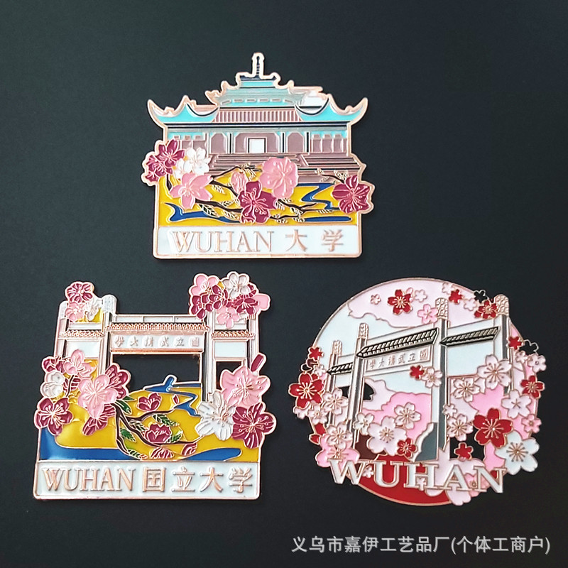 【嘉伊】金属冷蔵庫は有名大学文創桜シリーズ武漢大学万年暦キーホルダーを貼っています。