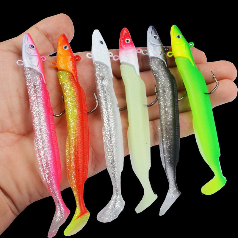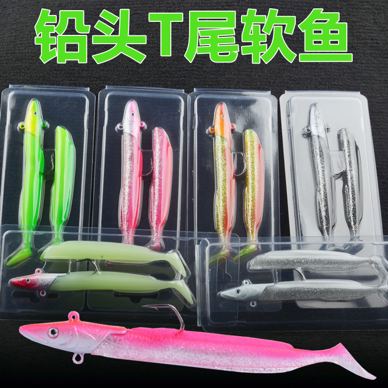 遠投海釣り鉛頭魚軟体餌釣り路亜餌包鉛魚軟餌夜光路亜T尾軟魚
