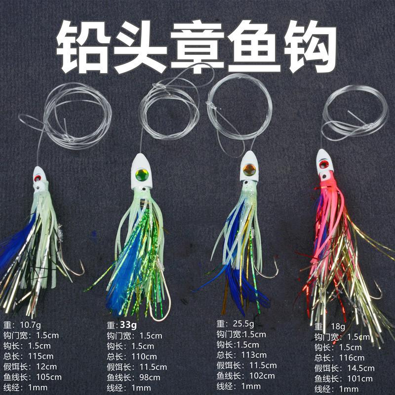 カラーフェザー夜光鉛ヘッド章魚餌蛍光餌クランクフックナイロン糸ソフト章魚餌偽餌海釣り船釣り