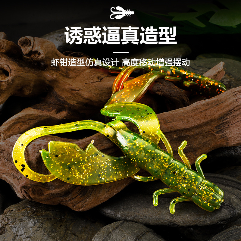 エビ型の巻き尾の柔らかい虫の餌競技エビの柔らかい餌の路亜の偽の餌はひっくり返して鉛の頭のフックの黒い穴のイクラのスズキの巻き尾のエビを釣ります。