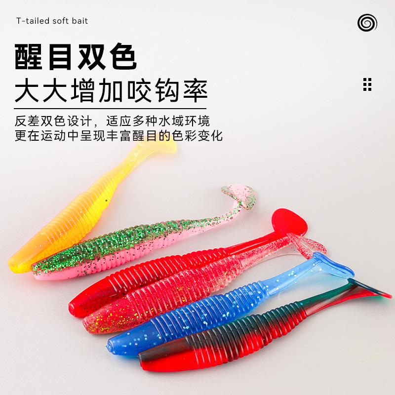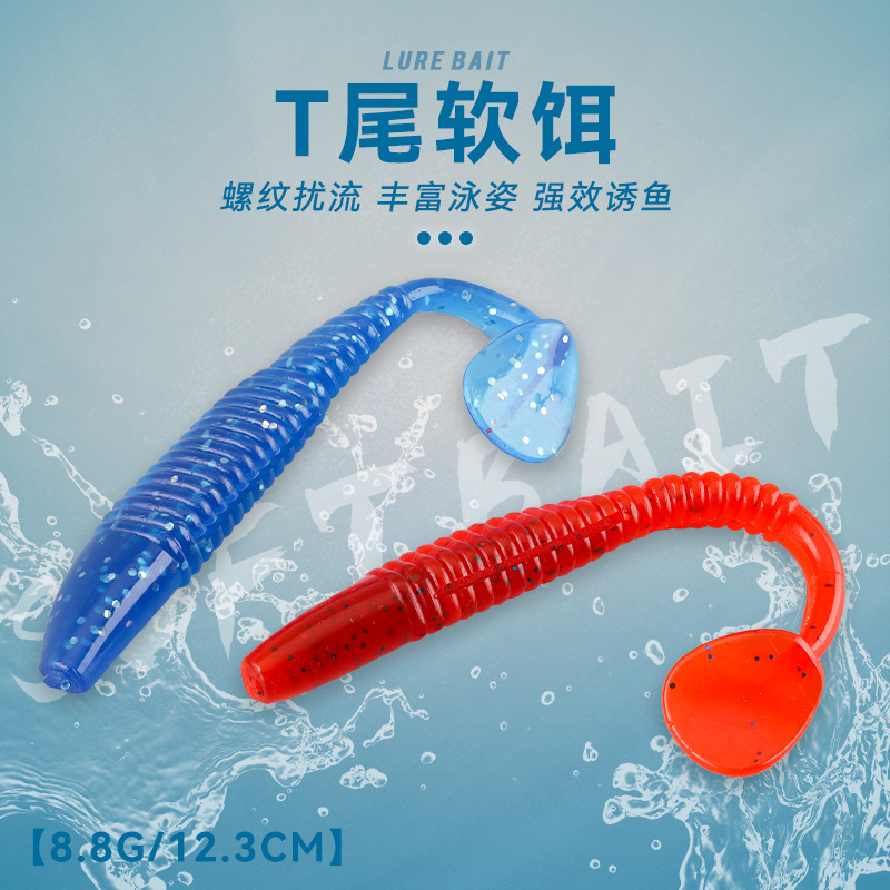 ねじ路亜餌軟魚ねじt尾ウジ2色軟餌緩沈偽餌スズキイクラ魚口黒坑スズキ