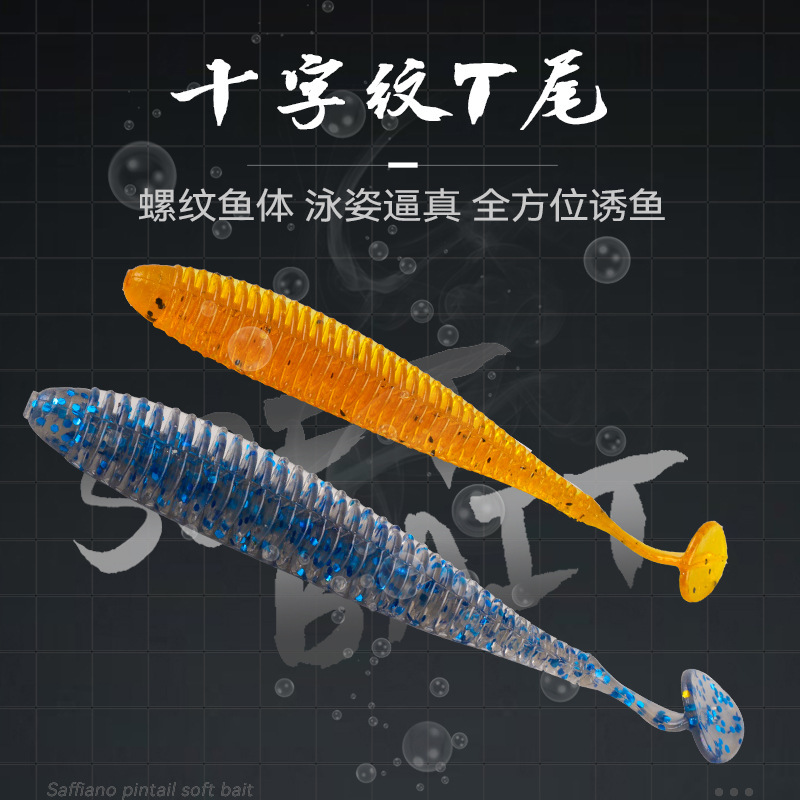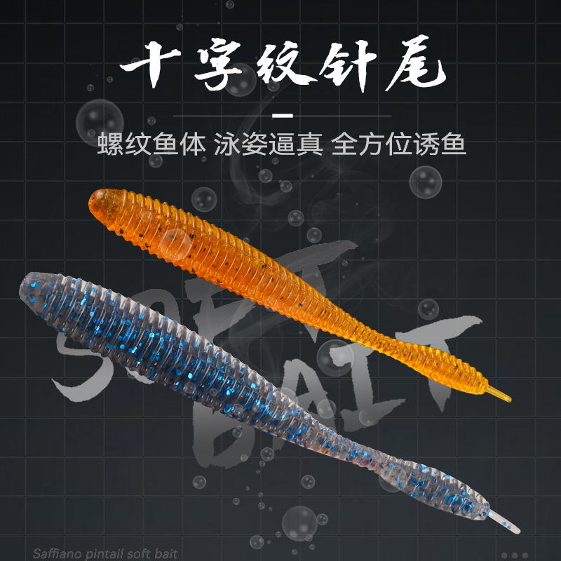 十字の紋様の針の尾の柔らかい餌のねじの先の尾の柔らかい餌はひっくり返して徳州のスズキのイクラを釣ります。