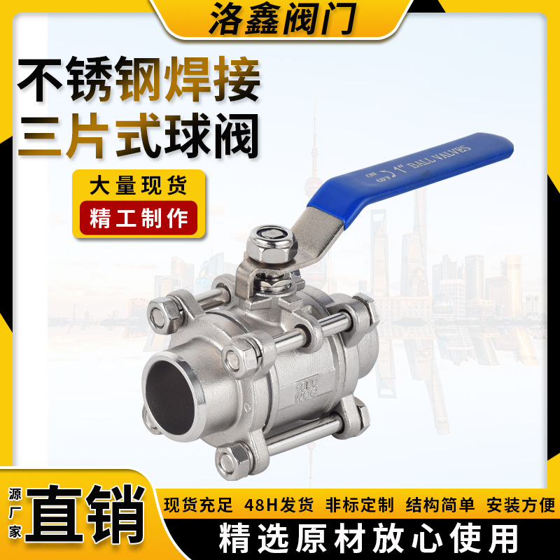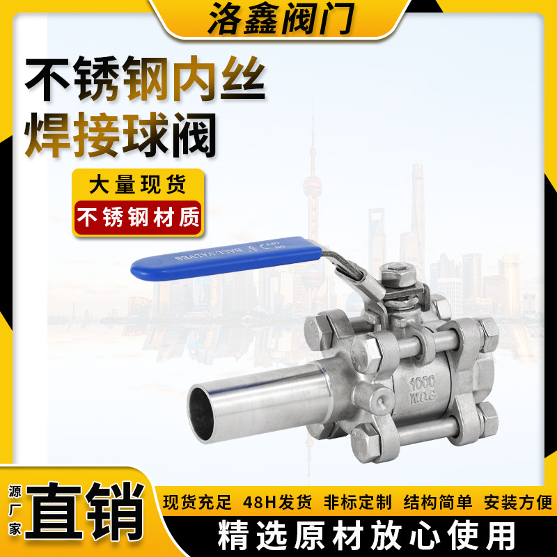 ステンレス304三枚式内糸溶接ボール弁延長溶接国標双方向手動式フローティングボールバルブ