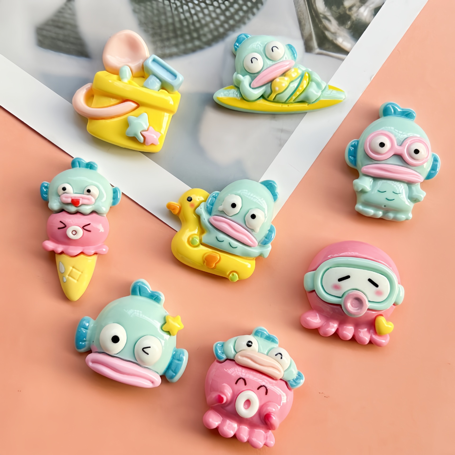 アニメの明るい面のサンリオは魚の樹脂の部品のdiyクリームのゴムを触って自分で髪を挟みます。