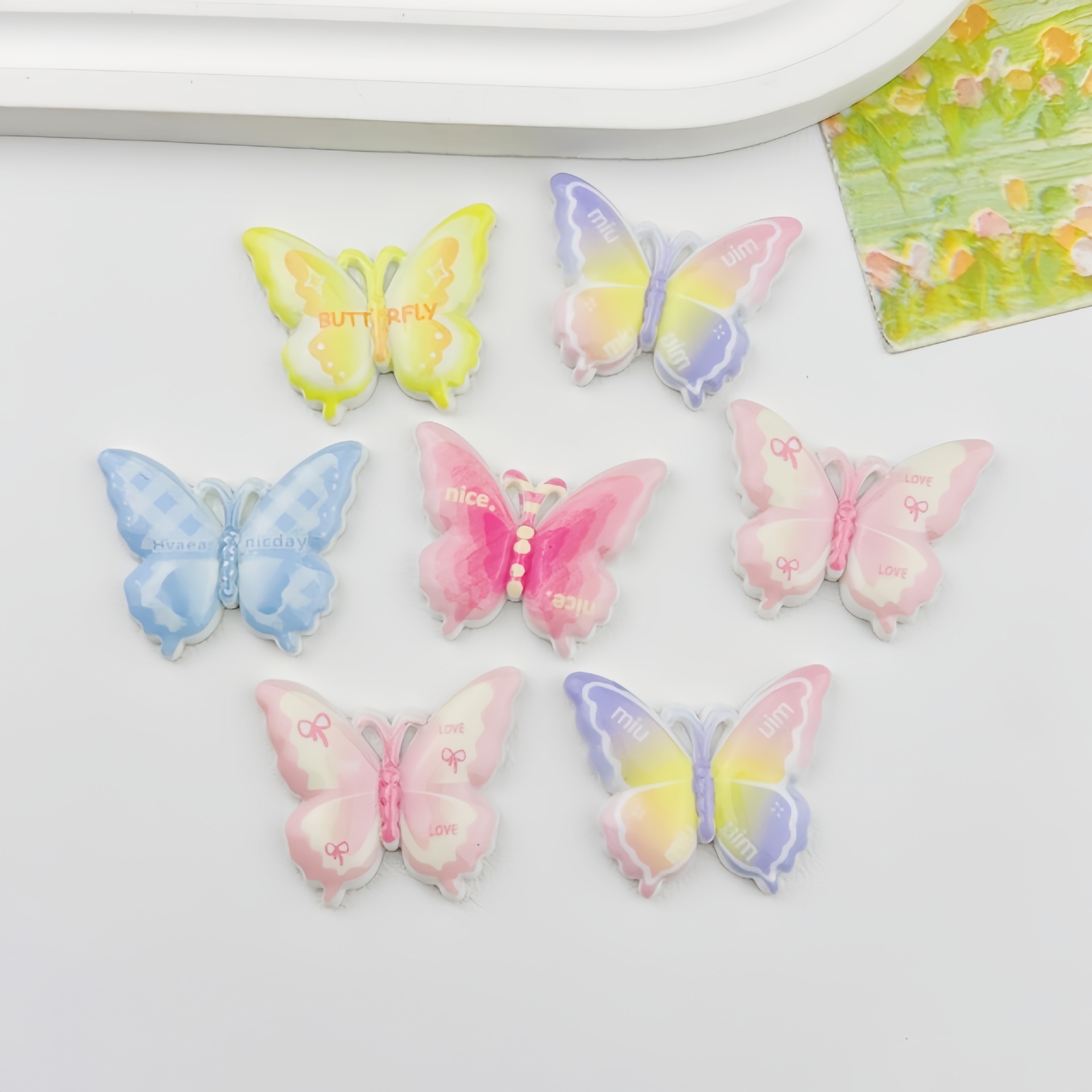 明るい顔のカラフルなアルファベットの蝶の樹脂の部品の手作りのdiyの髪のクリップの頭の飾りのコップは穴の靴のアクセサリーの材料を貼ります。