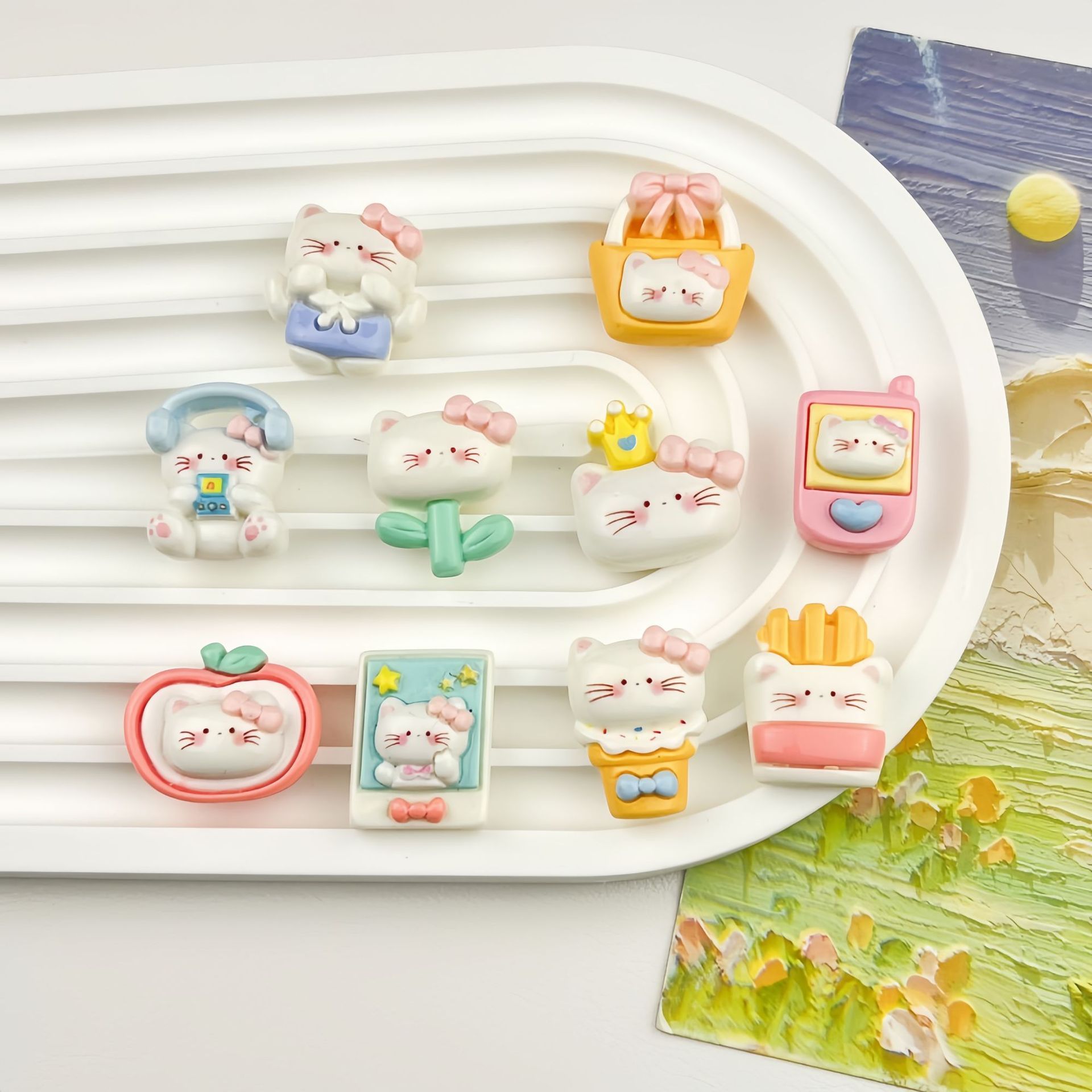 漫画かわいい子猫コンビニ樹脂アクセサリー手作り diy 携帯電話ケースヘアピンキーホルダー携帯電話ケースアクセサリー