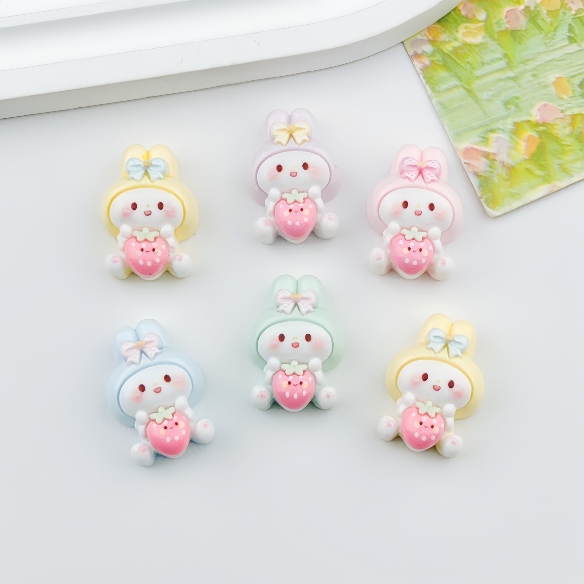 アニメdiy樹脂部品かわいいいちごウサギ手作り携帯ケースヘアクリップコップ靴ボタンアクセサリー卸売り