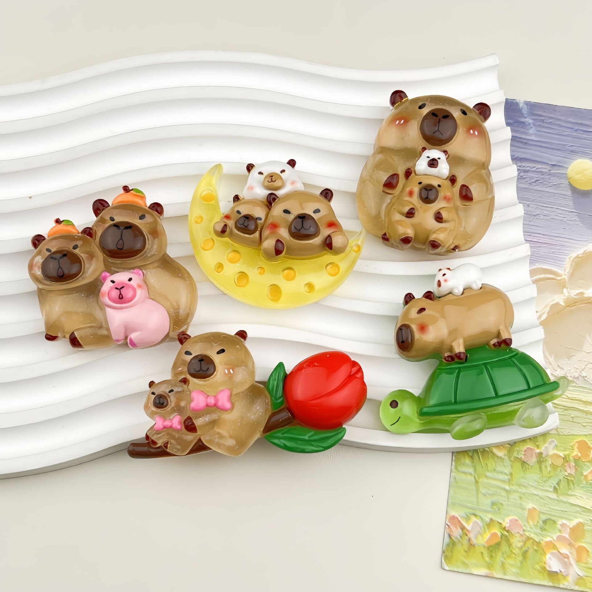漫画の夜の光の大きいカードの親子のカピバラのdiy樹脂の部品のクリームのゴムの手作りの冷蔵庫はヘアピンの装飾品を貼ります。