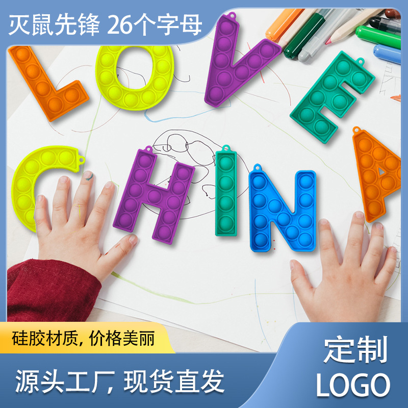 マウスの先駆者シリカゲルをセットした26文字の単語のキーホルダー親子のインタラクティブな科学教育の知育はおもちゃを押します。