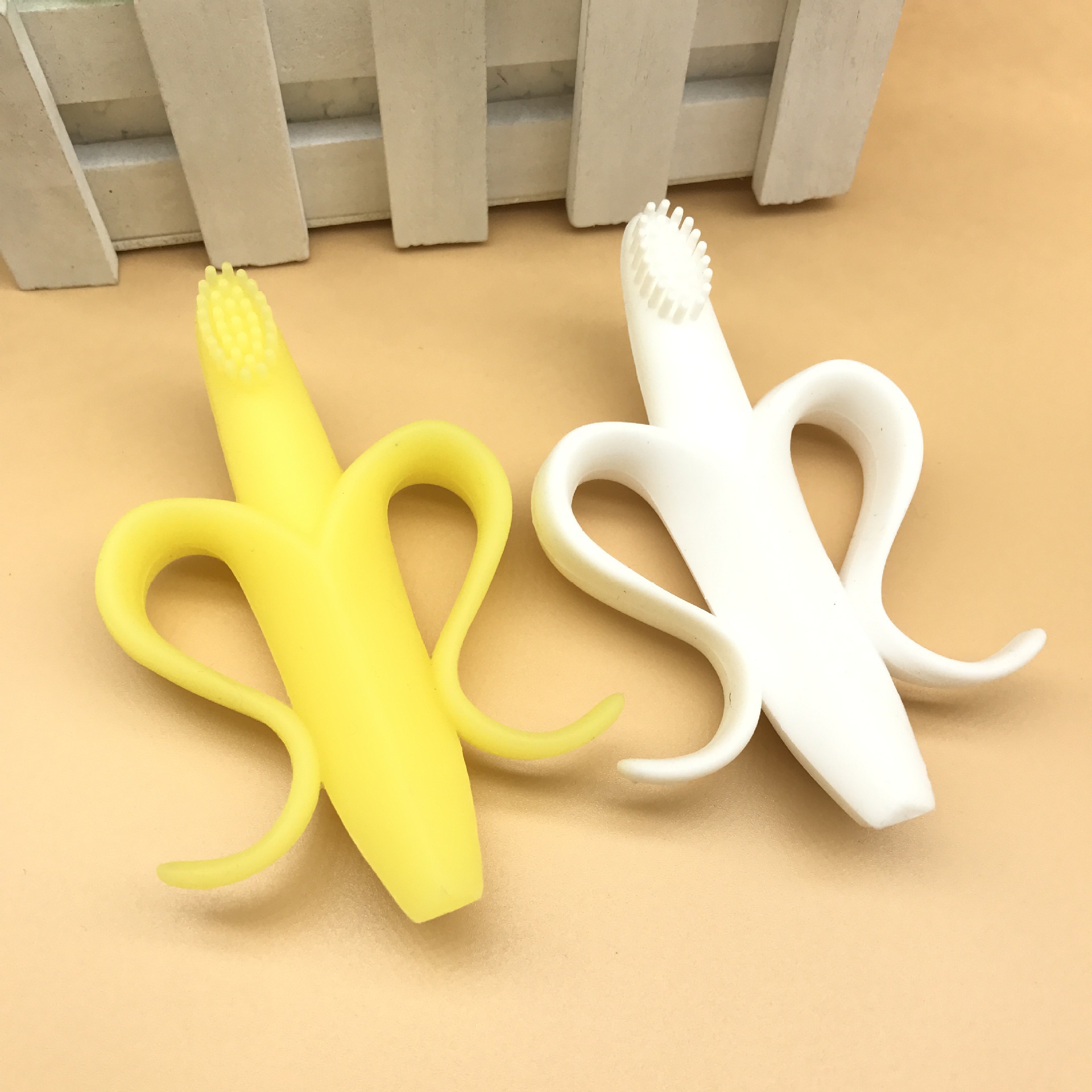 赤ちゃんのシリカゲルの歯磨きの棒のバナナの果物の歯磨きの乳歯は柔らかい歯ブラシのシリカゲルの歯磨きの模型をきれいにします。