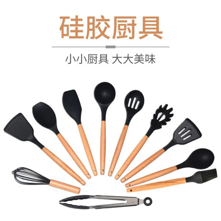 シリカゲル木柄調理器具11点セット無粘着鍋シャベルスプーン工具セットシャベルスプーン調理用シリカゲル調理器具