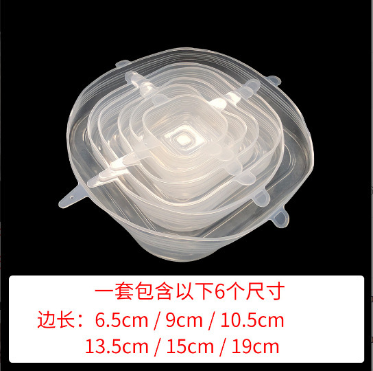 四角いシリカゲルの鮮度保持蓋六点セット冷蔵庫の電子レンジの冷蔵加熱蓋密封ラップフィルムカバーのシリカゲルの碗蓋
