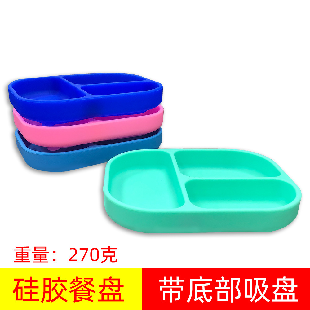 三格のシリカゲルの食事の皿の子供の食事の食器は吸盤の四角形を持って皿を分けて食事をします。