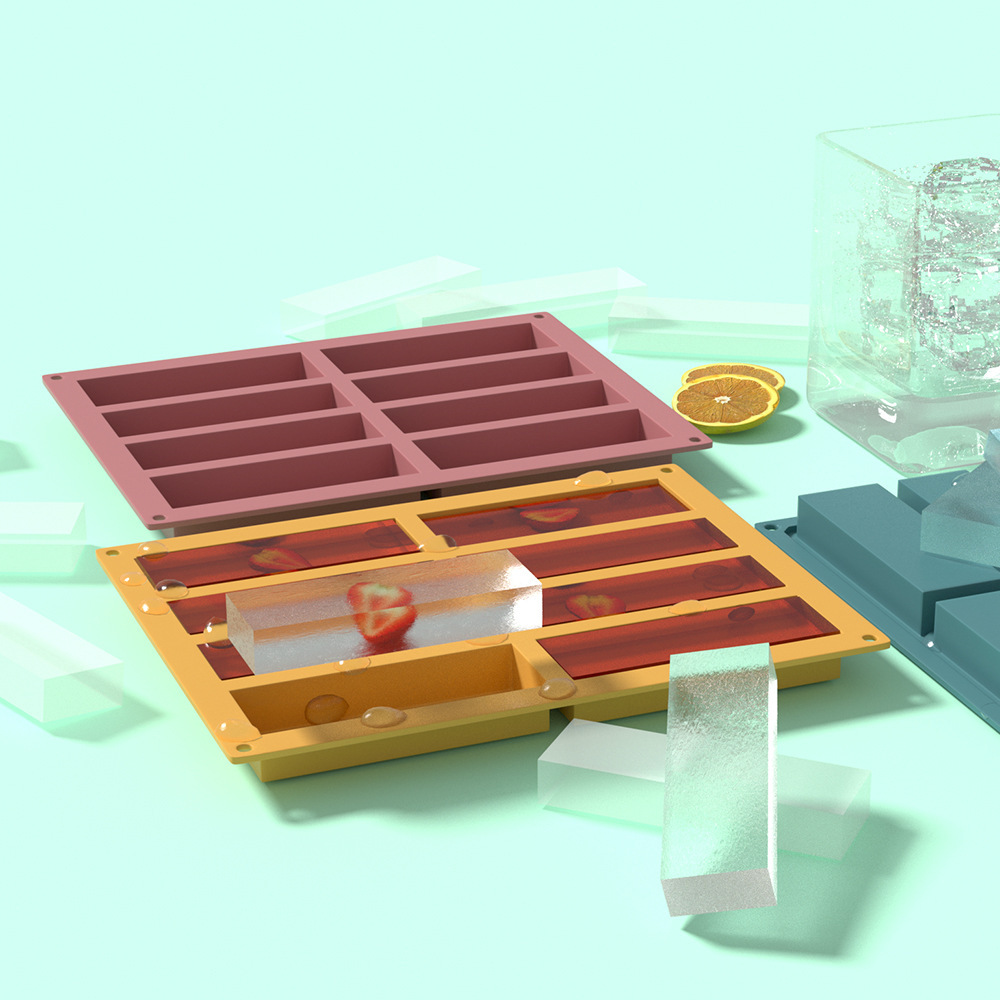 8連長角型シリコンケーキ金型長条形ムースゼリープリン氷格石けん金型焼き皿金型