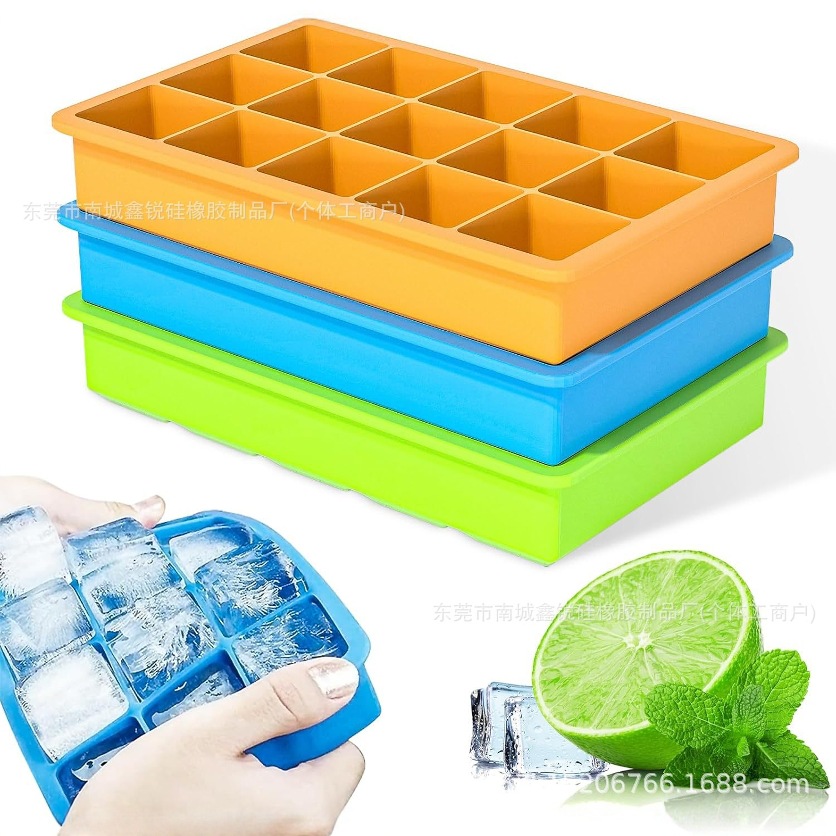 シリコーン製氷皿型食品グレード 15 グリッドアイスボックス家庭用アイスモールドアイスボール型大型氷キューブ研削ツール蓋付き