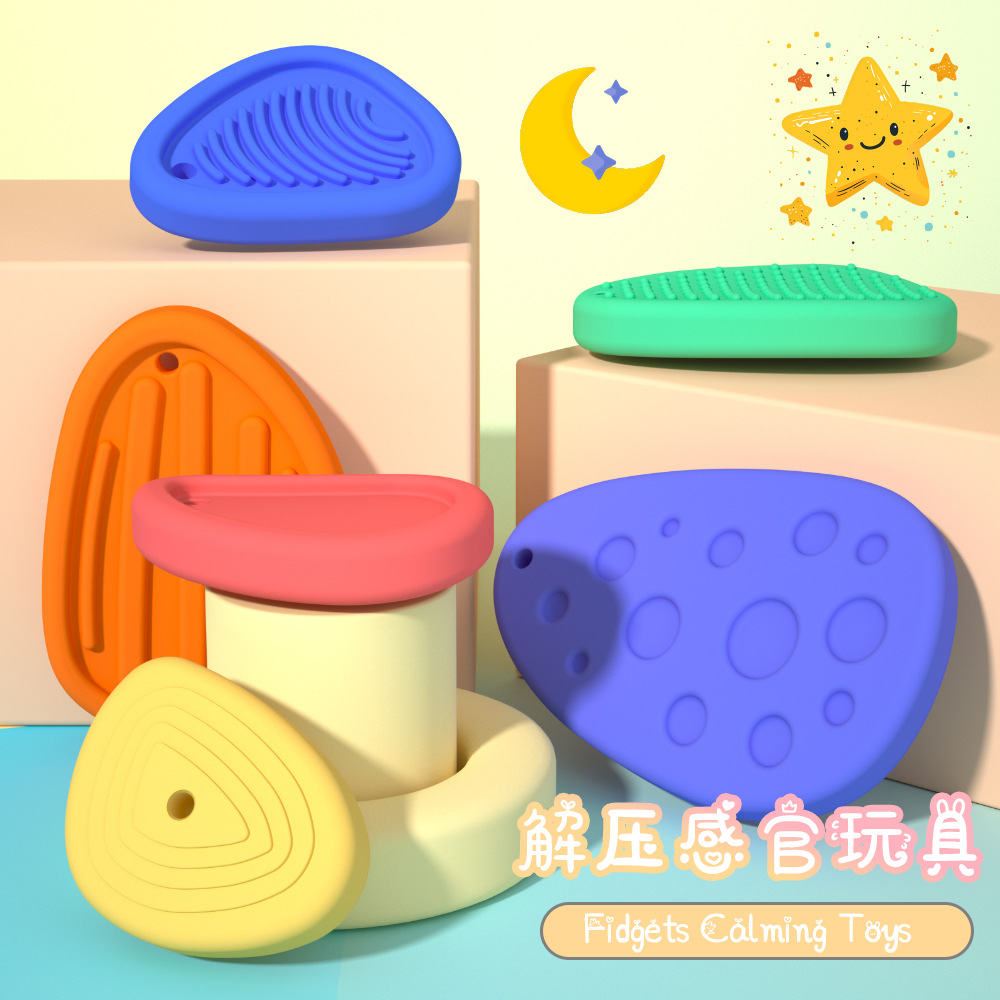Fidget Toys子供感覚石ストレス解消玩具装着可能ストラップ6点入りシリカゲル自閉症不安石