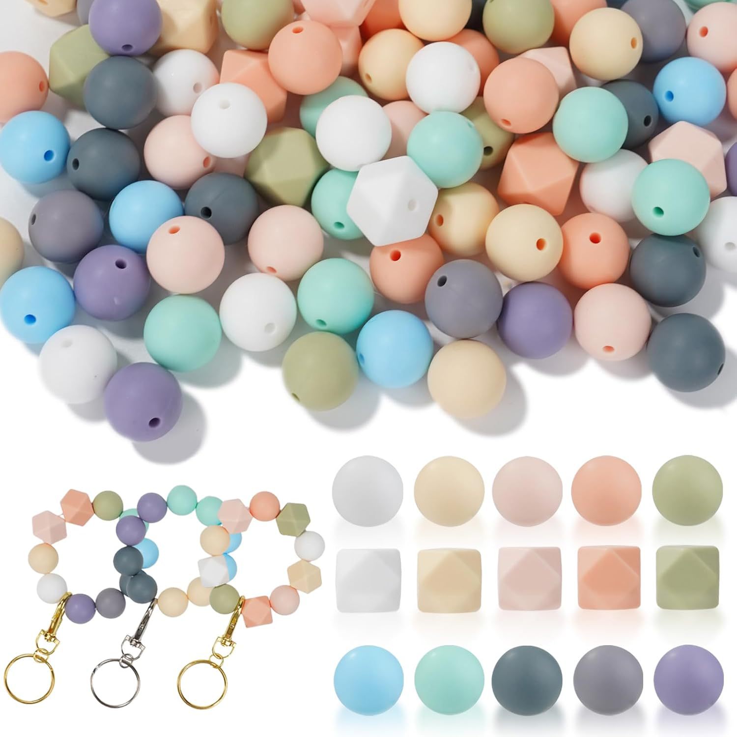 15mmシリコンビーズカラー円形八角形ゴムビーズブレスレットネックレスビーズ子供DIY工芸品制作