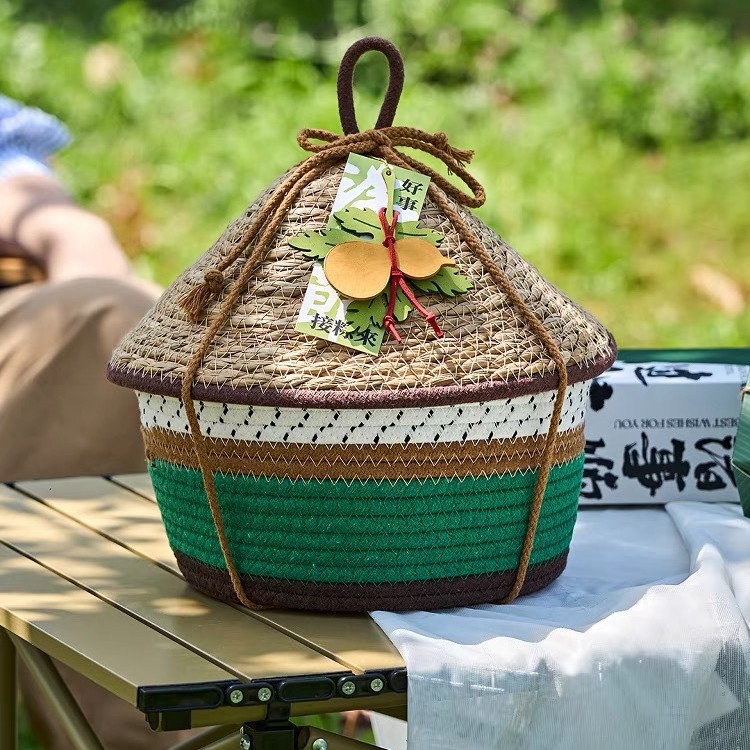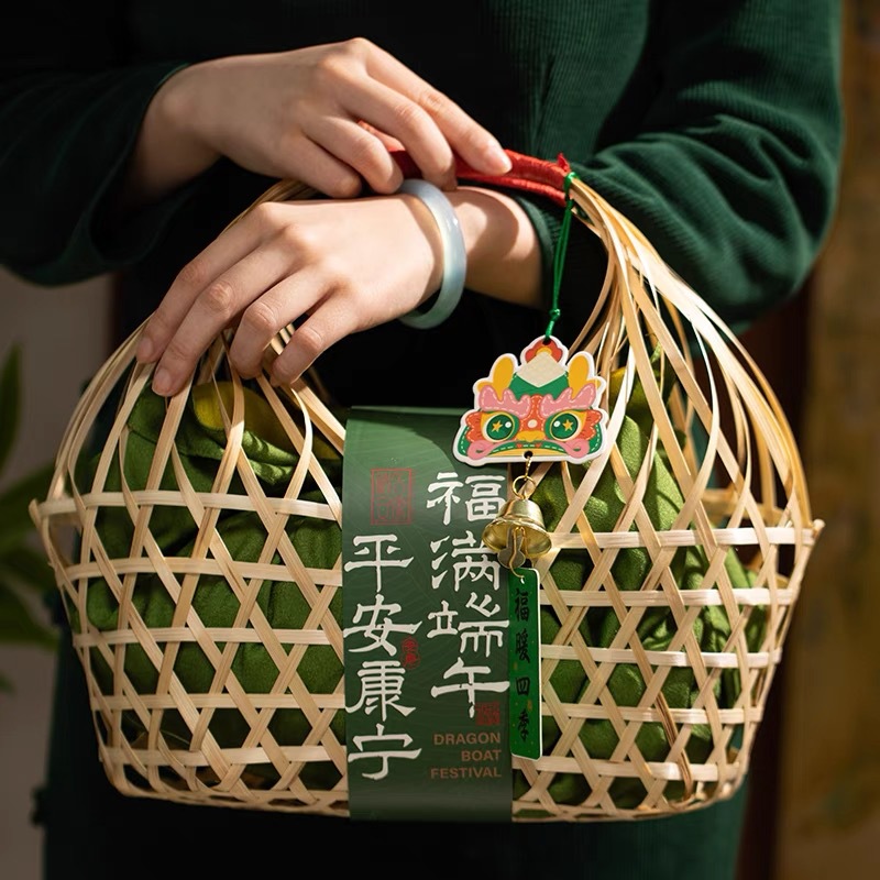 2025ちまきの包装箱の礼箱の塩鴨の卵のちまきの端午の節句は高級な透かし彫りの竹のかごの包装の贈り物の箱を送ります。
