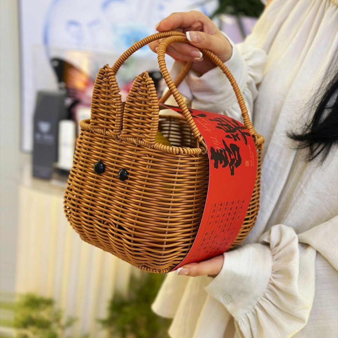 2025 中秋節ウサギ編みバスケット月餅包装箱国民的トレンドポータブル広東風卵黄クリスプボックスギフトボックス