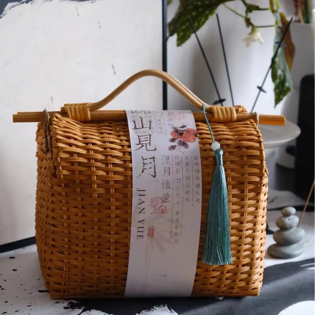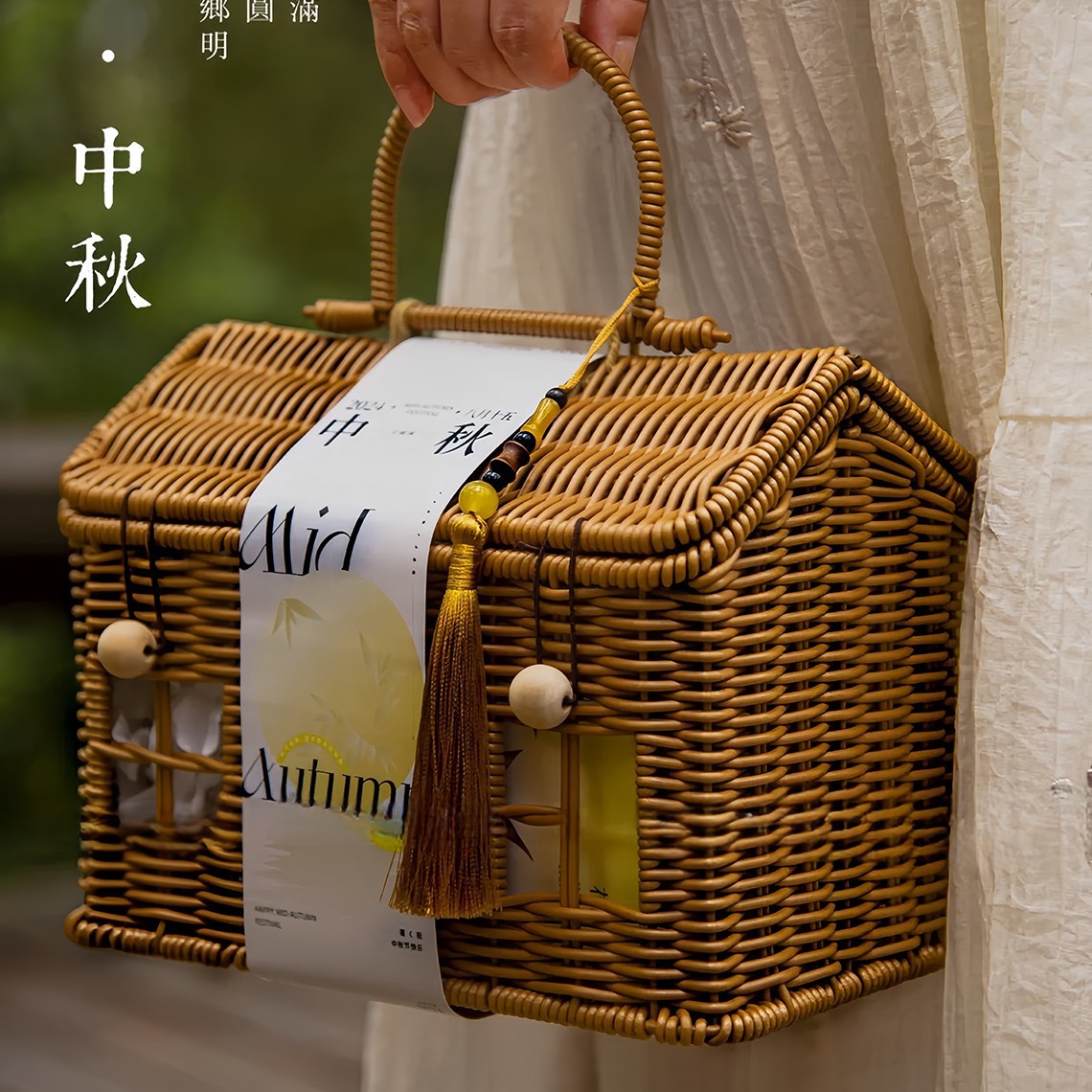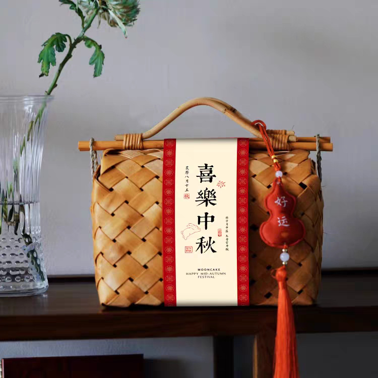 2025 新中秋節ポータブルバスケット広東風氷皮生肉月餅卵黄クリスプお土産竹織り中秋節ポータブルバスケット