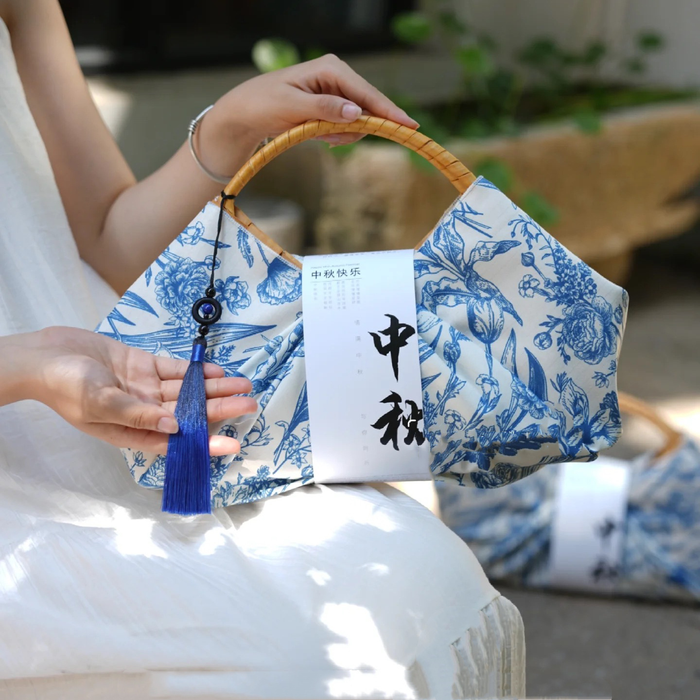 2025 新中秋月餅包装箱広東風氷皮生肉月餅卵黄クリスプお土産ポータブル竹バッグ