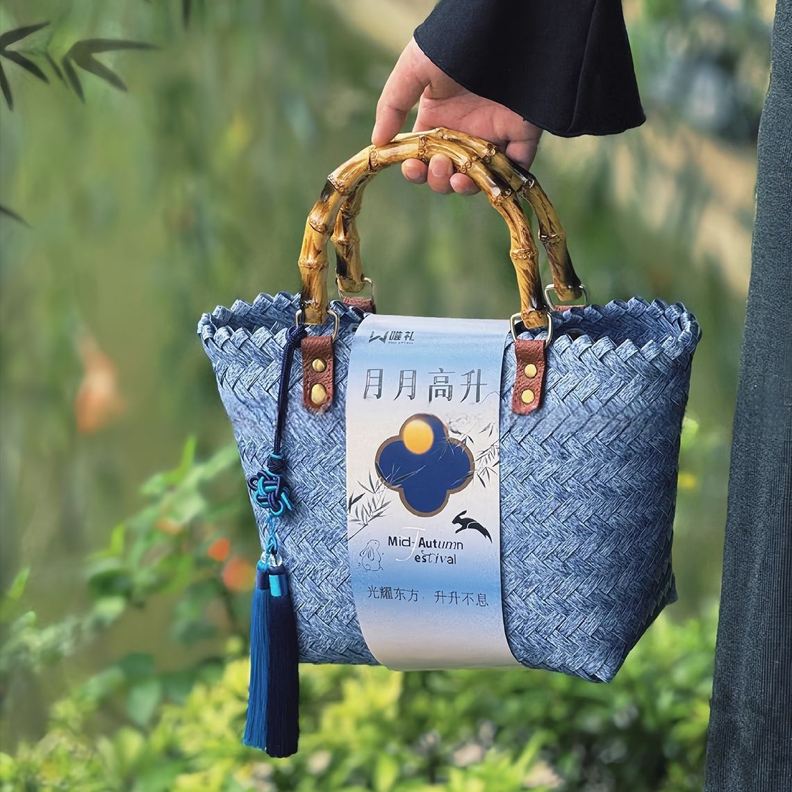 2025 中秋節織りハンドバッグ包装広東風氷皮生肉月餅卵黄クリスプお土産ハンドギフトバッグ