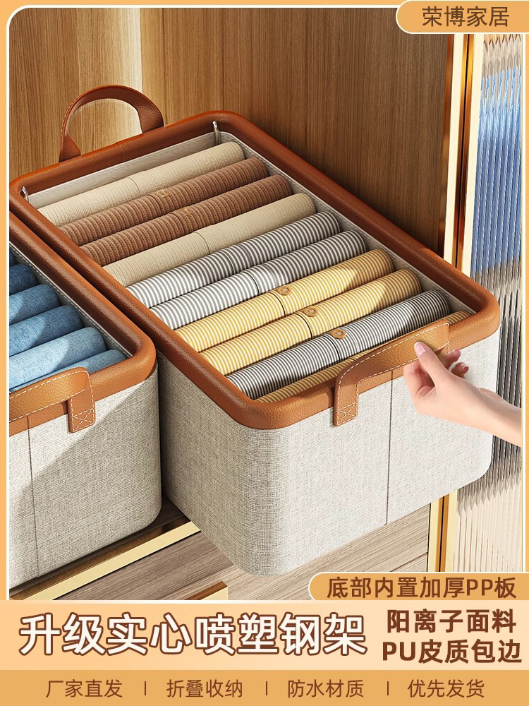 衣類収納ボックス家庭用箪笥層別整理ボックス衣類ズボン布芸綿麻折り畳み収納バスケット神器