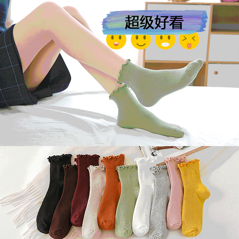 かわいい靴下春と秋冬の女性の靴下レトロな木の耳の靴下の中筒の白い山の靴下の女性の日本の秋冬