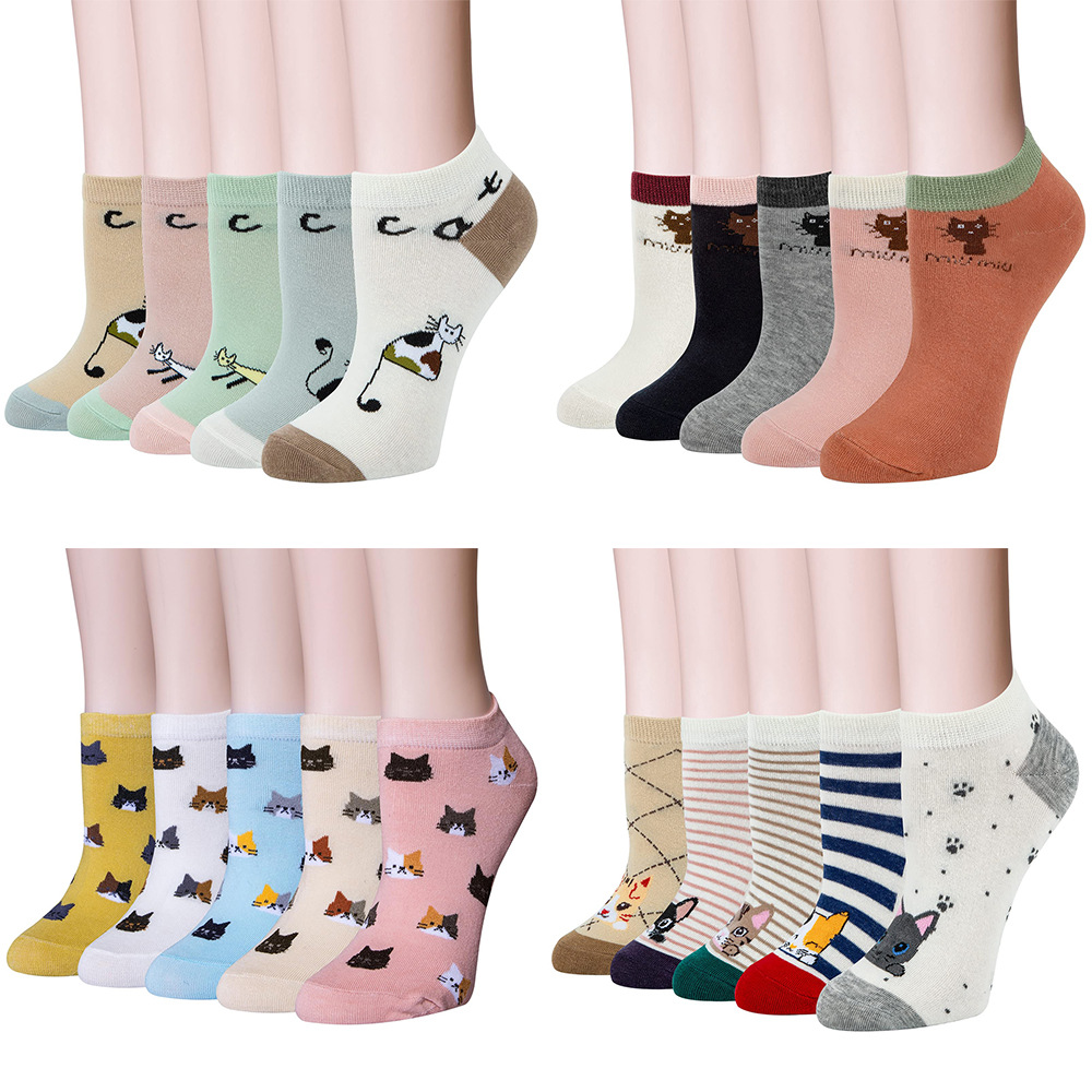 Socksコットンcatかわいい動物の子猫の短い筒の靴下の春の組み合わせは女性の船の靴下を混ぜます。