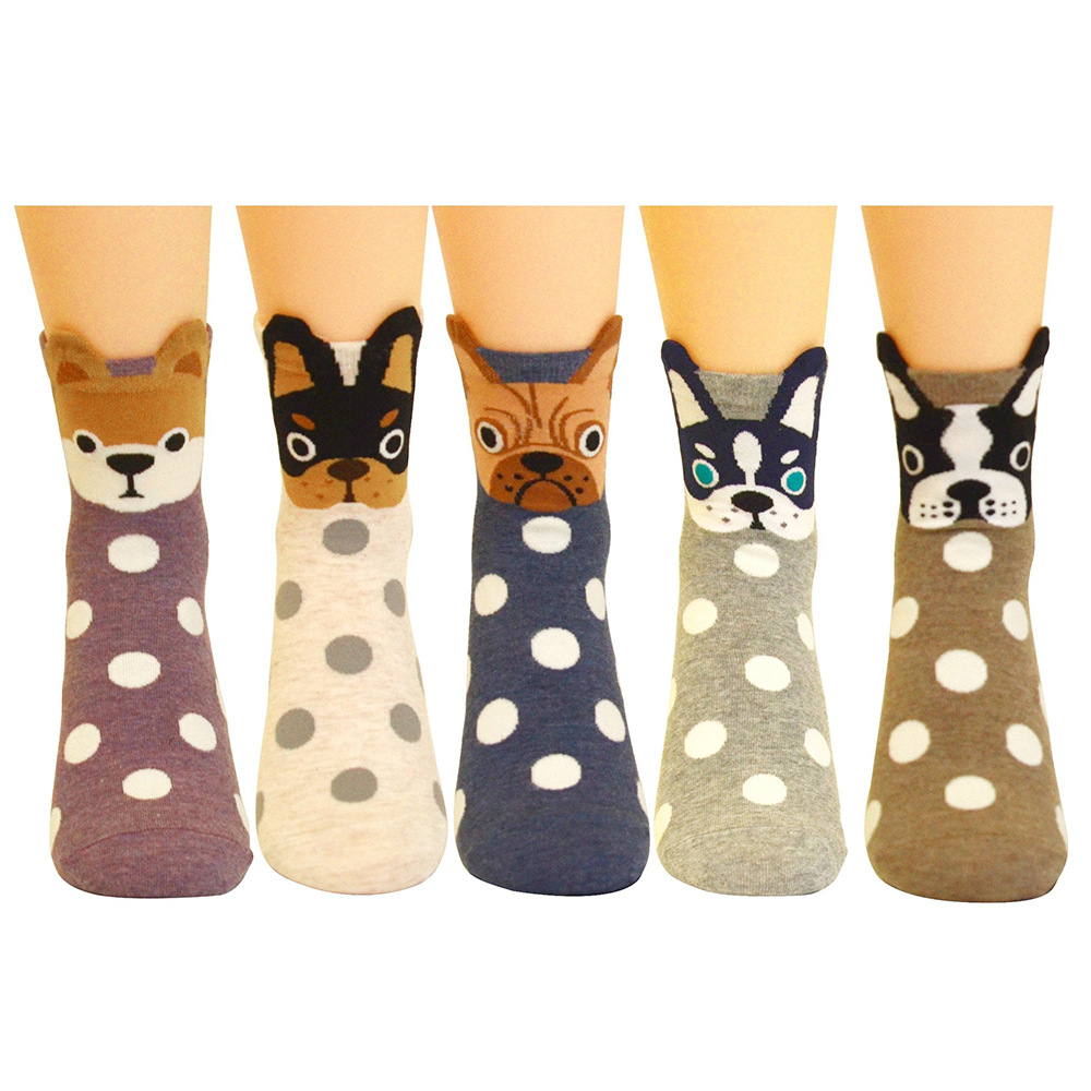 Happy socksかわいいアニメ動物靴下法斗柴犬ハスキー点犬女靴下中筒