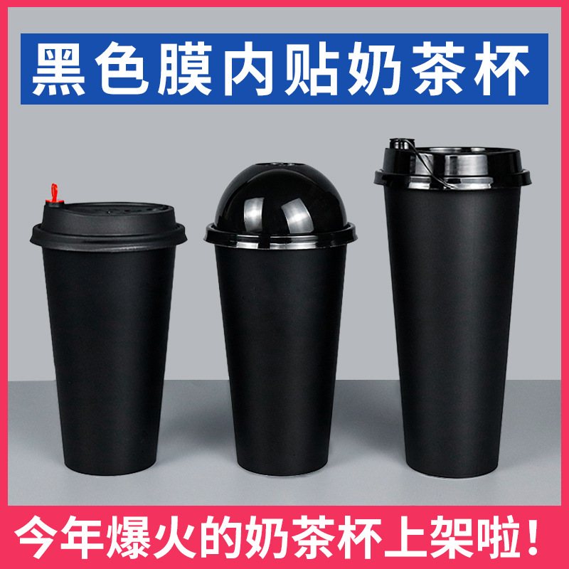 90口径使い捨てミルクティーカップ黒色フィルム内にミルクティーカップ卸売りpp射出カッププラスチック包装カップを貼る