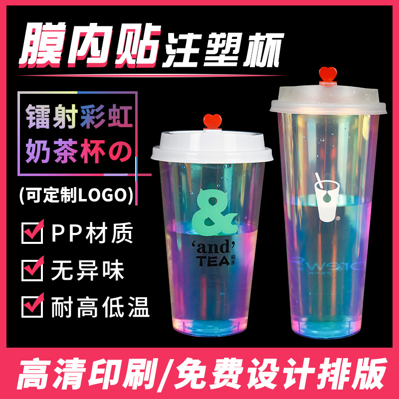 90口径を厚くした使い捨てミルクティーカップフィルム内に射出カップ500ml 700ml印刷ロゴプラスチックカップを貼る