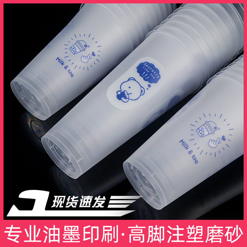 90口径ミルクティーカッププラスチック一度に厚いフロスト高足カップ700ml射出カップ印刷ロゴベアー