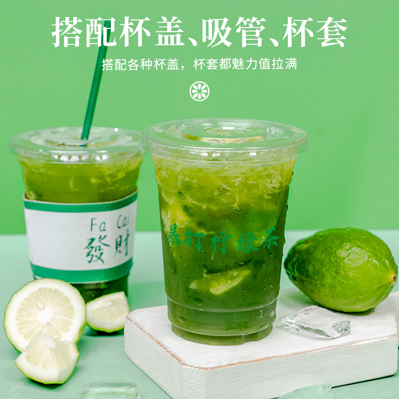 98口径16オンス暴打レモン茶pet使い捨てプラスチックカップコーヒーカップミルクティーカップ卸売り冷たい飲み物カップ