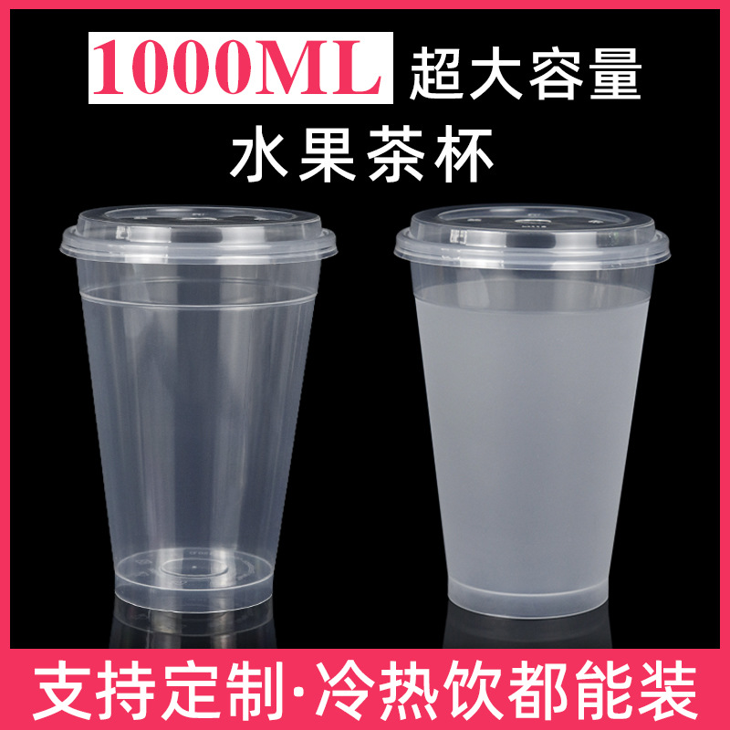 119口径1000ml使い捨てミルクティーカップジュース冷飲射出成形フロストカップ蓋はロゴを印刷できる